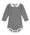 - Diesen Baby-Mädchen-Langarmbody aus 1x1 Rippstrick zieren das berühmte Milleraies-Ringelmuster von Petit Bateau sowie ein raffinierter Bubi-Kragen. Besonders praktisch ist die Druckknopfleiste vorne, dank der sich der Body ganz leicht an- und ausziehen lässt. Ein toller Baby-Mädchen-Body mit Milleraies-Ringelmuster, der jedem Outfit eine schicke Note verleiht.