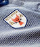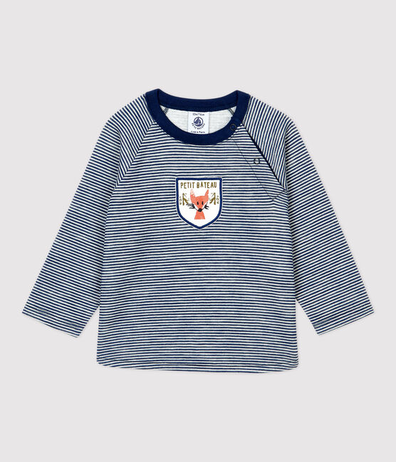 - Langärmeliges gestreiftes T-Shirt mit dekorativem Siebdruck-Patch in der Mitte.
