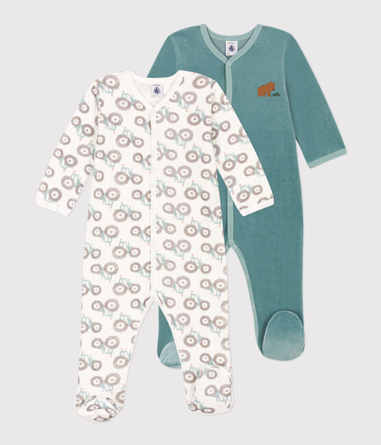 - Die beiden Pyjamas sind vorne und im Schritt mit einem Druckknopfverschluss versehen.