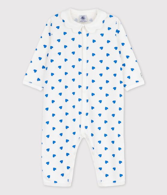 • Baby-Strampler mit blauen Herzen ohne Füße weiss MARSHMALLOW/blau BRASIER