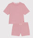 Damen-Kurzpyjama aus Rippstrick mit Ringelstreifen, einem dehnbaren und angenehm zu tragenden Stoff.