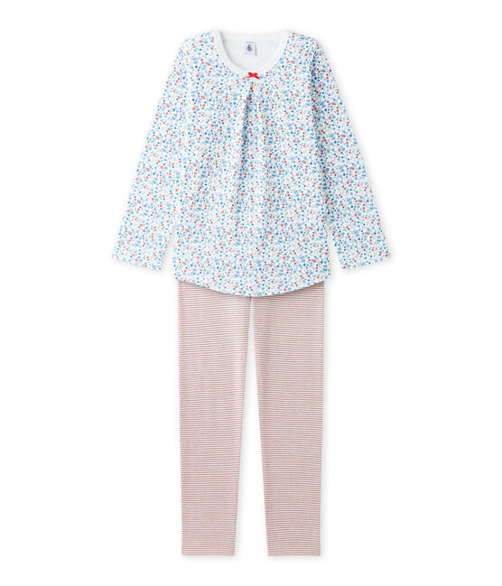 • Geblümter Mädchen-Schlafanzug weiss LAIT/weiss MULTICO
