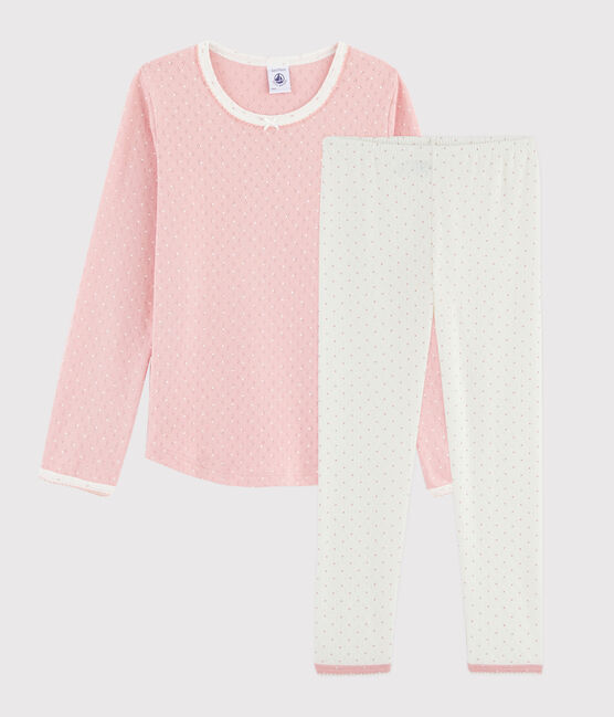 - Pyjama aus durchbrochenem Rippstrick für mehr Weiblichkeit. Kleine Schleife am Ausschnitt und kontrastierende Kante.